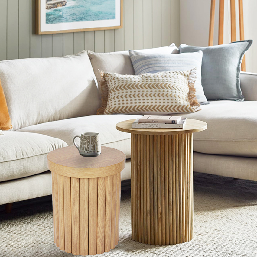 Novo Estilo Nordic Home Sala Varanda Redonda Nesting End Table Set Madeira Top Metal Frame Center Tea Coffee Table Set
